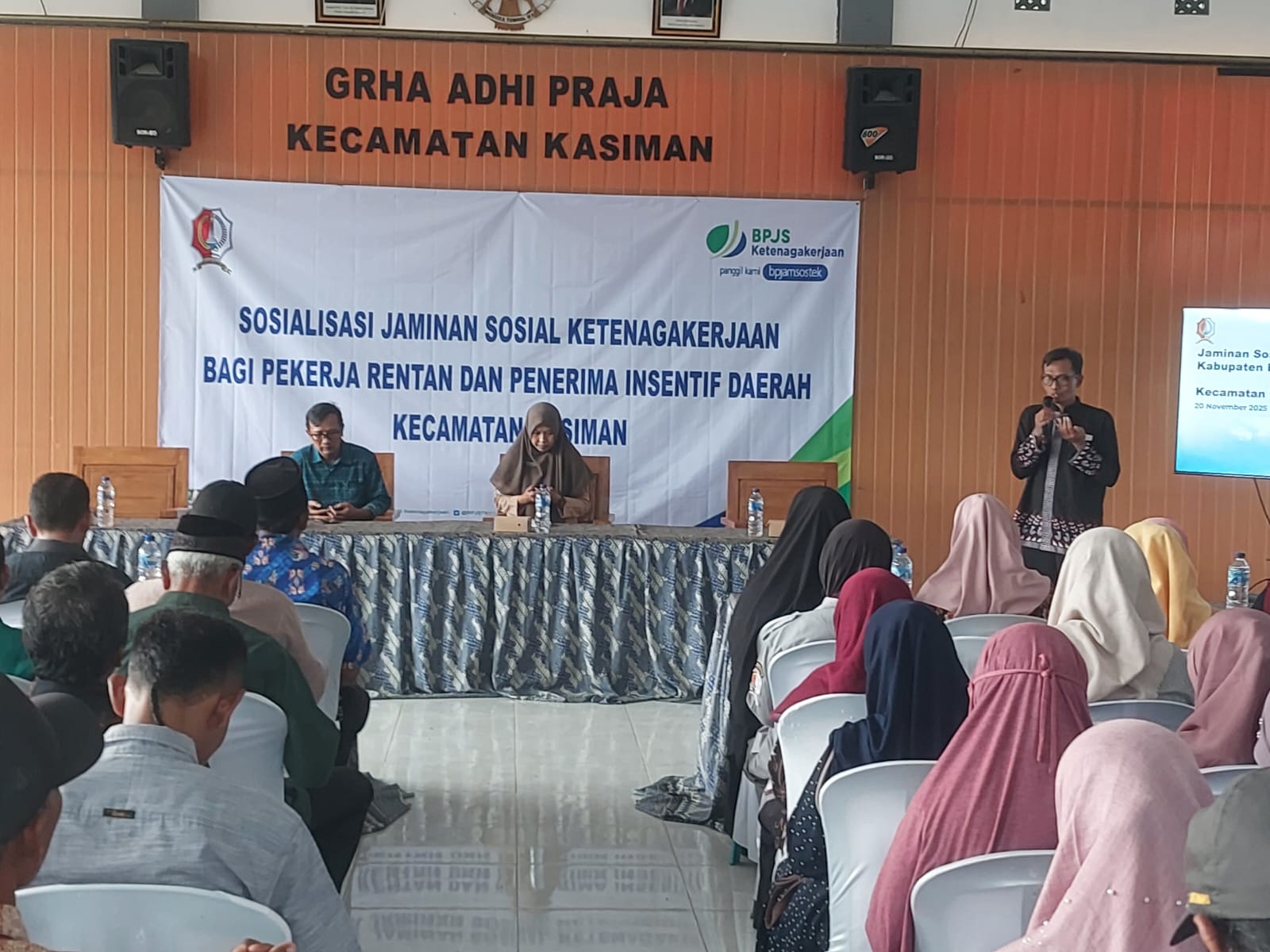 Kamis, 20 November 2025, Kecamatan Kasiman menggelar kegiatan Sosialisasi Jaminan Sosial Ketenagakerjaan bagi Pekerja Rentan dan Penerima Insentif Daerah. Acara yang dilaksanakan di Grha Adhi Praja Kecamatan Kasiman tersebut bertujuan memberikan pemahaman menyeluruh mengenai manfaat perlindungan BPJS Ketenagakerjaan, terutama bagi masyarakat dengan tingkat risiko kerja yang tinggi.